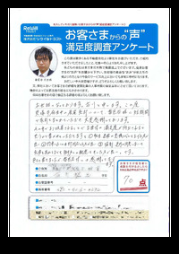 貝塚市 阪上 猛司様 お客様の声が届きました。ありがとうございました。