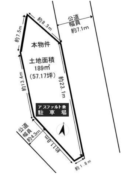 | 接道方向 | 側 | 接道幅員 | 4.3m |