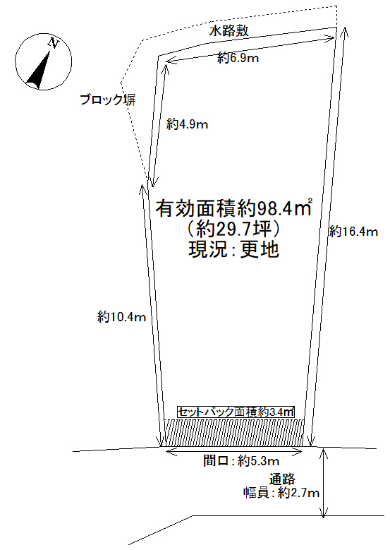 | 接道方向 | 南東側 | 接道幅員 | 2.7m |