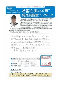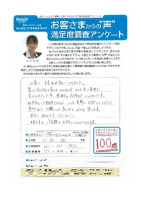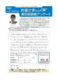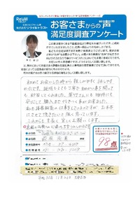 岸和田市 匿名希望様 ほぼ完璧な対応だったと思います。 ただ自分で所有権移転申請を行うと言う貴重な経験 (及びお金の節約)に対し もう少し客に寄り添って いただきたかった。 【担当より】 岸和田市 匿名希望様 お世話になっております。 この度は大変貴重なご意見を頂きまして誠に 有難うございます! 所有権移転に関しましては、とても大変であったと 思います。 こちらがサポートし切れていなかったこと、とても残念で あります。申し訳ございませんでした。 頂いたご意見を無駄にしないよう、これからも頑張って 参ります。よろしくお願い致します。 |
