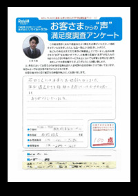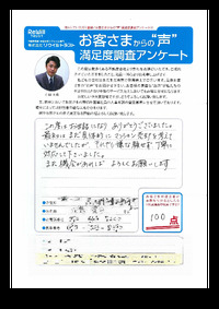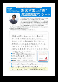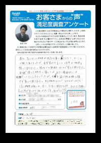 ご売却とご購入の同時進行で様々な事柄が続きましたが、多岐にわたり ご判断とご協力を頂き誠にありがとうございました。 嬉しいお言葉も綴って頂き今後の営業活動の励みになります。