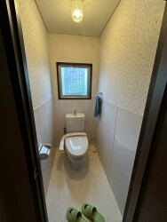 洗面化粧台にはトールキャビネットを新設し、収納力をアップ。便器の入替えや玄関収納の新設、暮らしの快適性を細部まで高めています。