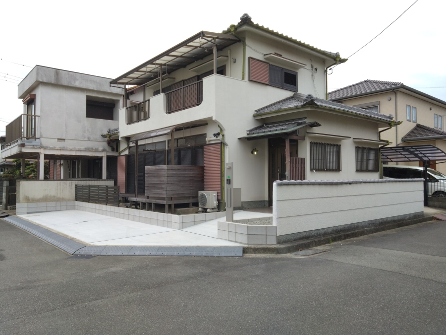外構では庭塀の解体と植栽撤去を行い、新たに駐車場を2台分増設。これにより車の出し入れがしやすくなり、日常の使い勝手が大きく向上しました。さらにブロック工事や土間コンクリート打設、玄関スロープ・フェンス・機能門柱の新設により、安全性と利便性も高めています。