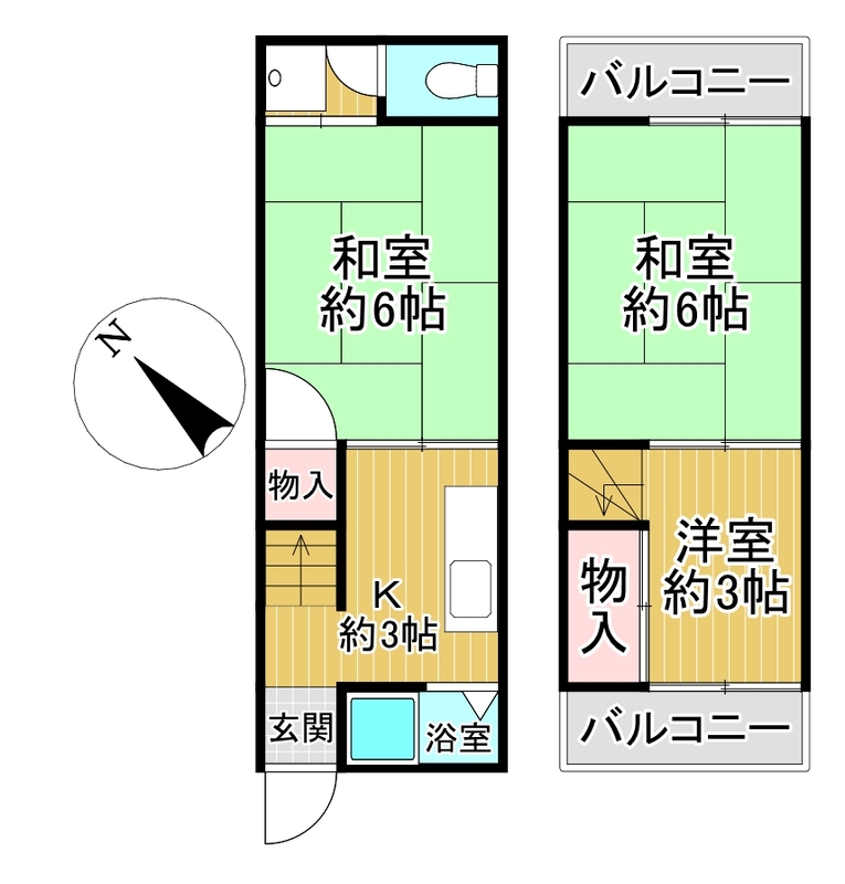 | 間取備考 | K3帖 和6帖 和6帖 洋3帖 | ||