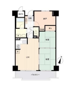 専有面積60.77平米! 東南バルコニーにつき陽当たり良好! 2SLDKの間取り! 南海本線「樽井」駅まで徒歩10分!