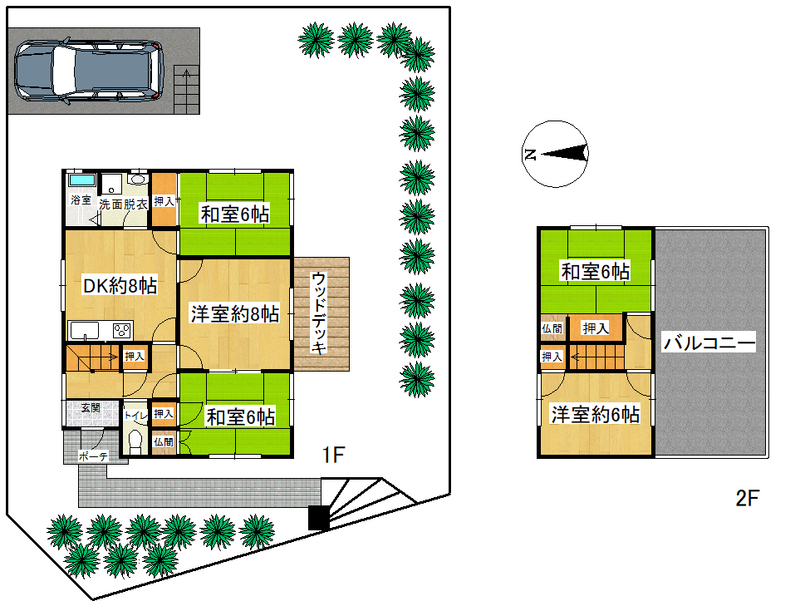 2Fバルコニーは約16帖ほどありますので、季節が良い時期に太陽の下でティータイムを楽しめます♪閑静な住宅地で緑が多く良い環境です♪静かにゆったり過ごしたい方、連絡お待ちしております♪