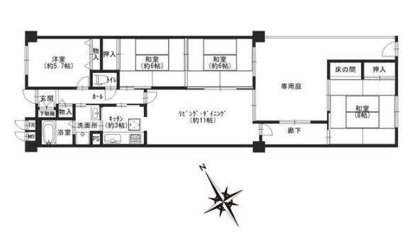専有面積広々87.13平米! 間取4LDK! 専用庭ございます!ガーデニング等楽しめます!