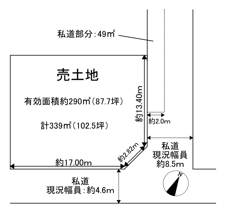 | 接道方向 | 北東側 | 接道幅員 | 8.5m |