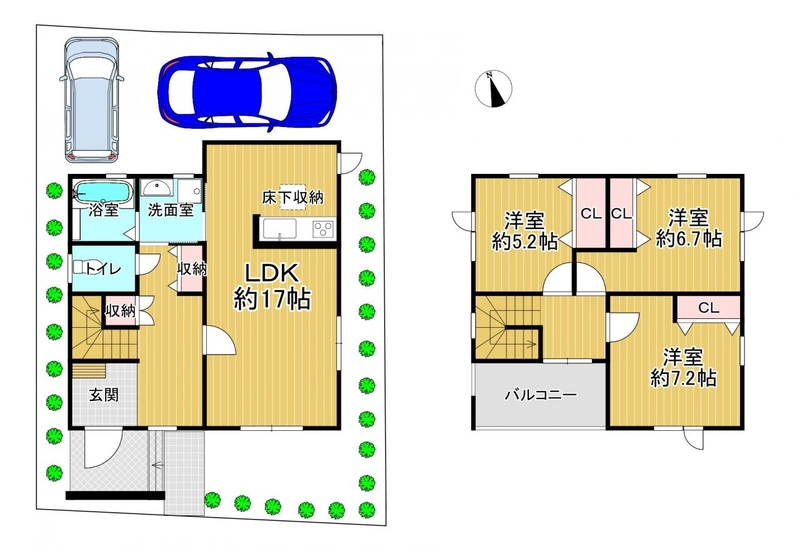 | 設備 | 都市ガス 上水道 下水道 床下収納 バルコニー | ||