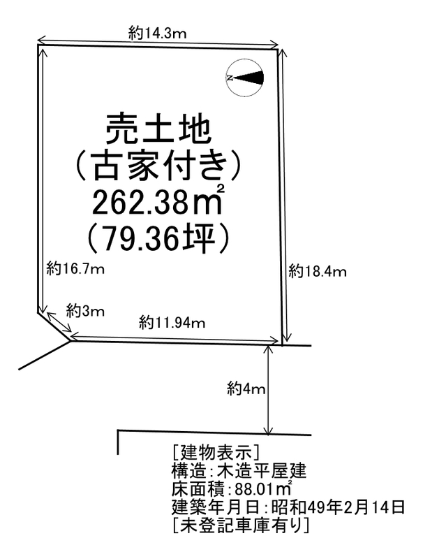 | 種別 | 売り土地 売地 (現況:上物有) | ||