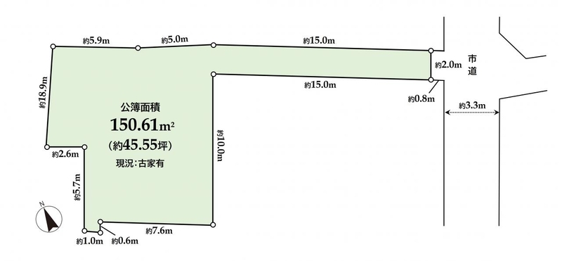 | 土地(実測) | 土地(公簿) | 150.61m2 | |