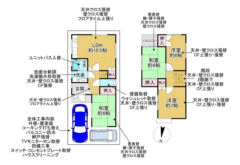 | 備考 | ※令和7年度固定資産税:年額31,500円※リフォームプラン内容:ユニットバス入替、洗面台入替、洗濯機水栓取替、トイレ便座取替・ウォシュレット取替、畳表替、襖・障子張替、クロス張替、フロアタイル上張、CF取替、網戸張替、床下収納庫取替、外壁・屋根塗装、コーキング打ち替え、バルコニー防水、TVモニターホン取替、防蟻工事、ハウスクリーニング等 ※駐車場は車種・サイズによります ※司法書士は売主指定です |