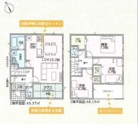 | 備考 | ※4.6.10号棟角地緩和:建ぺい率50%※敷地内に電柱及び支線が入る可能性があります※テレビアンテナ・シャッター・面格子・網戸・カーテンレール・照明等は付きません(U/) | ||