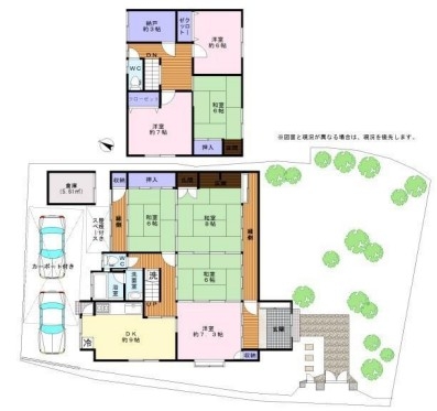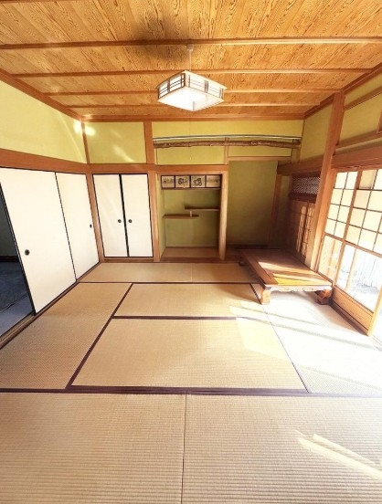 土地面積は約99.74坪と広々。建物は風格ある日本家屋の7SDKで、縁側や南庭があり、落ち着いた和の趣を感じられます。