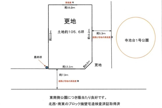 備考 ※北西側・南東側のブロック擁壁については宅造の許可・完了検査証取 「得済みです。ただし申請書類、申請図面は紛失の為ありません。事前協 議図面(写) 完了検査済証(原本)はあります。のりません。 了使 消 はあります。