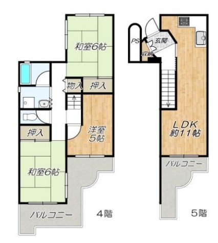 メゾネットタイプ! バルコニー広々! 間取り3LDK! 千代田駅まで徒歩8分!