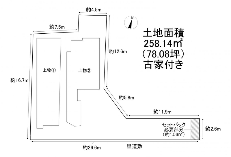 | 種別 | 売り土地 売地 (現況:上物有) | ||