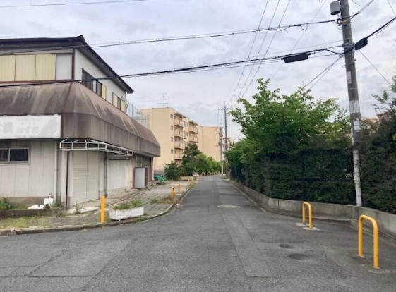 | 備考 | ※北東側道路(団地内通路):大阪府所有、建築基準法第43条第2項第2号扱い、北西側道路:大阪府所有、道路として非該当※上物有:1階店舗・2階住居、鉄骨造鉄板葺き2階建て、延べ床面積493.14平米、別途増築未登記(木造)約98平米(U/) | ||