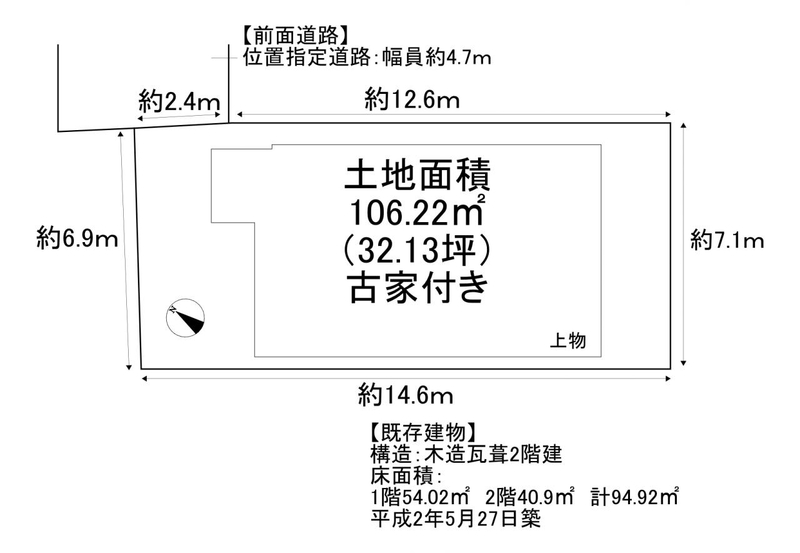 種別 売り土地 売地 (現況:上物有)